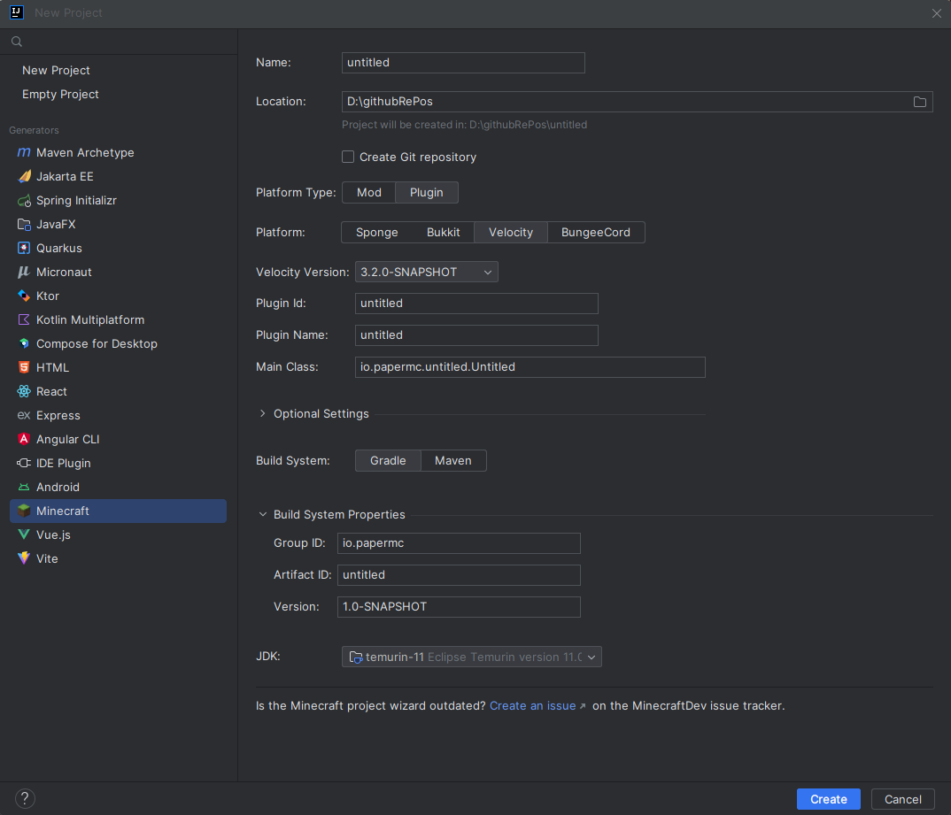 Alternatively, you can use the Minecraft Development IntelliJ plugin to create a new project. To do that you need to install the plugin first.